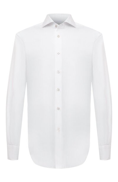 Белоснежная лаконичная сорочка, при создании которой мастера неаполитанской марки выполнили 22 ручных операции, органично дополнит образ любого уровня сложности. Для пошива модели использовали мягкую хлопковую ткань, не препятствующую циркуляции воздуха. Изделие почти не мнется, долго сохраняя идеальный вид, и приятно ощущается на коже.