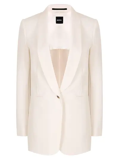 -Кремовый удлиненный пиджак из костюмной ткани эластичной в четырех направлениях от BOSS BLACK.