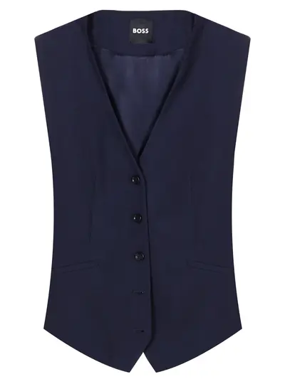 -Темно-синий классический жилет из тонкой шерсти от BOSS BLACK.
