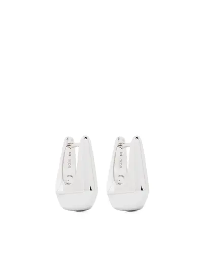 silver-tone recycled sterling silver rhodium plated huggie hoop design internal logo-engraved for pierced ears These earrings come as a pair. Hallmarked in the United Kingdom at the London Assay Office.