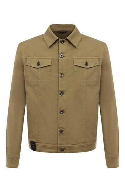 Куртка от марки, основанной Стефано Риччи, идеально завершит непринужденный повседневный образ в базовых тонах. Модель цвета хаки выполнили из плотного денима, защищающего от легкого ветра, но отлично пропускающего воздух. На груди предусмотрели два кармана с клапанами, один из которых украшен миниатюрной восьмиугольной эмблемой. Еще пара карманов есть по бокам. Сбоку широкий пояс украсили черным патчем с фирменной монограммой.