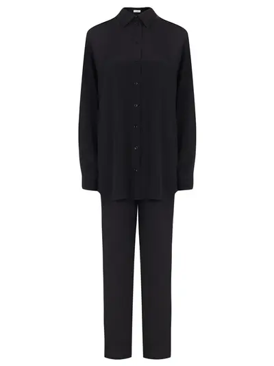 -Черный костюм из струящегося шелка от SASHAVERSE.