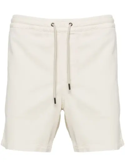 vanilla white textured finish twill weave elasticated waistband two side slash pockets rear patch pocket mini logo tag thigh-length drawstring waist