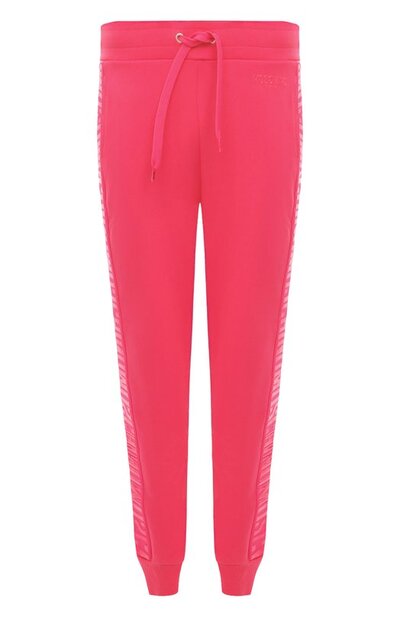 Зауженные джоггеры насыщенного оттенка фуксии выведут на максимум яркость повседневного комплекта с худи в тон или станут единственным акцентом в образе с вещами в базовой гамме. Для пошива модели с регулируемым поясом-кулиской использовали мягкий хлопковый трикотаж, поэтому она поддерживает оптимальный микроклимат и не ограничивает движения. Брюки украсили широкими лампасами с рельефным глянцевым паттерном в виде логотипа.