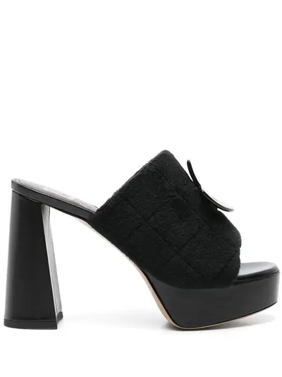 black logo plaque towelling finish short pile design slip-on style square open toe branded leather insole 110mm block heel leather outsole