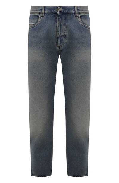 Голубые прямые джинсы выполнили из плотного хлопка, который хорошо держит форму и не вытягивается со временем. Декоративные потертости и неравномерный, словно выцветший оттенок придают изделию винтажный вид. Модель гармонично впишется в непринужденный образ.