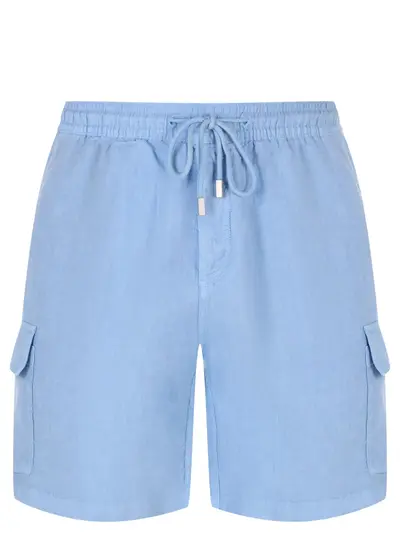 -Голубые шорты-карго из легкого дышащего льна от VILEBREQUIN.