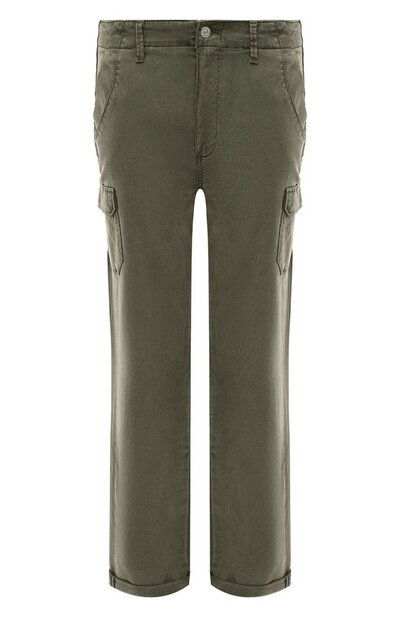 Прямые укороченные джинсы с широкими отворотами адаптировали для теплого сезона. Плотному хлопку предпочли тонкий шелковистый лиоцелл, который лучше пропускает воздух и почти не ощущается на коже. Чтобы придать оттенку сложные полутона и глубину, готовое изделие обработали отбеливателем. Наряду с прорезными боковыми и накладными задними предусмотрели небольшие карманы карго.
