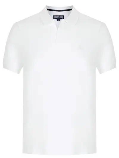 -Белое поло из хлопка-пике от VILEBREQUIN. -Модель прямого кроя с короткими рукавами, узкими манжетами, отложным воротником, V-образным вырезом на груди, вышитым логотипом в тон. -Поло дополнит легкие летние образы с льняными брюками или шортами.