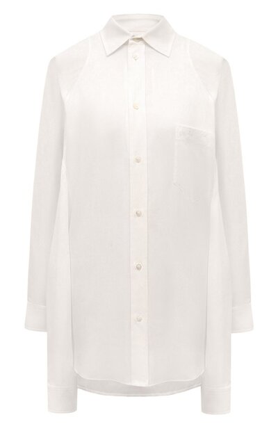 Прием деконструкции вывел эту белую свободную рубашку на новый уровень. Модель дополнили еще одной парой рукавов по бокам, которые можно завязать как пояс, спереди или сзади. Для пошива изделия с отложным воротником и накладным карманом использовали тонкий легкий твил на основе шелковистого лиоцелла, придающего материалу атласный блеск.