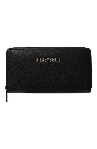 Для изготовления черного портмоне выбрали прочную зернистую кожу, на которой незаметны царапины. Переднюю панель украсили серебристым логотипом, такая же надпись есть на пуллерах молний. Внутри предусмотрели отделения для купюр и документов, карман для мелочи, 14 слотов и петлю для карандаша. На задней стороне изделия есть плоская ручка.