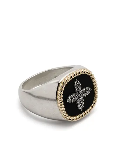 9kt yellow gold sterling silver brushed finish signet band coiled rope-effect trim black bakelite resin round-cut pavé-set diamonds Normal everyday use and external agents may reduce the lustre of gemstones and gold surfaces. To maintain, use specific, non-abrasive products specially meant for cleaning jewellery.