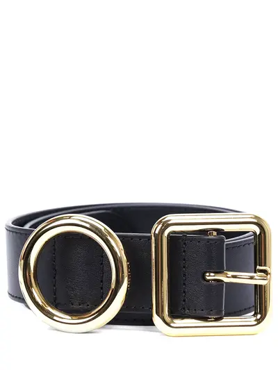 -Черный ремень из натуральной кожи от JACQUEMUS. -Модель с золотистой квадратной пряжкой и одной круглой шлевкой, выполненной из того же легкого латунного сплава, подчеркнёт талию или традиционно подойдет под стандартные шлевки джинсов.
