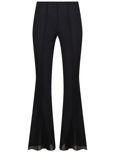 -Черные брюки из легкой смесовой вискозы от JULI TOO. -Модель облегающего кроя с клешем от колена, стандартной посадкой, застежкой на потайную молнию сбоку, графичными швами спереди, которые визуально вытягивают силуэт.