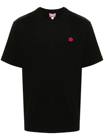 black organic cotton lightweight jersey crew neck Boke Flower patch at the chest short sleeves straight hem unlined