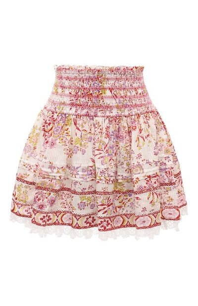 Разноцветная мини-юбка с широкой эластичной кокеткой сшита из тонкого мягкого хлопка с красочным принтом. Легкая модель отделана внизу ажурным кружевом с фестонами. Наши стилисты предлагают создать впечатление цельной вещи, сочетая изделие с топом из такой же ткани. Летний образ завершат белые шлепанцы и сумка.