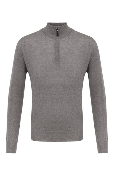 Серый джемпер станет идеальной основой как повседневного комплекта, так и нестрогого офисного образа. Для изготовления модели с воротником-стойкой и короткой молнией мастера итальянской марки использовали тонкий шерстяной трикотаж. Материал из тщательно очищенного от жестких волокон сырья получился приятным на ощупь, поэтому в изделии будет комфортно.