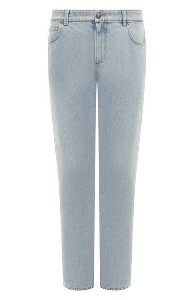 Слегка выбеленные джинсы гармонично впишутся в монохромный образ с футболкой и рубашкой. Для пошива модели прямого кроя, обеспечивающего свободу движения, выбрали мягкий деним, не препятствующий циркуляции воздуха. Принадлежность марке обозначили патчем с фактурным логотипом и крупной пуговицей с изображением фирменного льва.