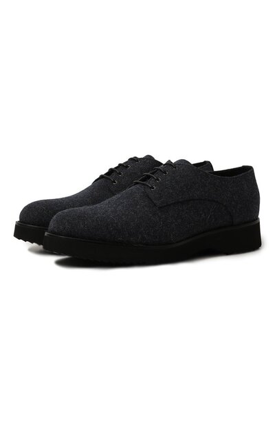 Изменив подход к выбору материала, команда марки сделала темно-синие дерби менее формальными. Для изготовления модели вместо привычной кожи использовали плотный текстиль, напоминающий войлок. Обувь из него хорошо удерживает тепло, а широкая подошва с зубчатым протектором помогает меньше скользить на мокрой и обледенелой дороге.