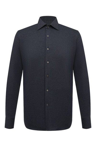Меланжево-синяя рубашка классического кроя сможет стать частью образа в стиле smart casual. За рамки формального гардероба ее выводит материал — эластичный хлопковый трикотаж с добавкой прочного нейлона. Лаконичная модель без планки и с гладкой спинкой без вытачек комфортно облегает фигуру, не сковывая движений.