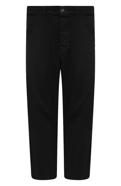 Для создания темно-синих брюк, окрашенных в готовом виде, использовали тонкий габардин из отборного американского хлопка пима. Особенно приятная на ощупь модель с прорезными карманами не препятствует циркуляции воздуха, а благодаря добавлению в состав ткани эластана изделие комфортно садится по фигуре и обеспечивает свободу движения. Наши стилисты предлагают собрать расслабленный образ с футболкой и кардиганом, завершив его кедами.
