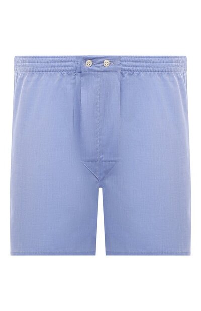 Для изготовления голубых свободных боксеров Royal использовали отрезы мягкой хлопковой ткани, оставшейся от пошива фирменных пижам. Такой подход позволил сэкономить природные ресурсы и сократить количество отходов. Трусы с широким эластичным поясом застегиваются на две пуговицы.