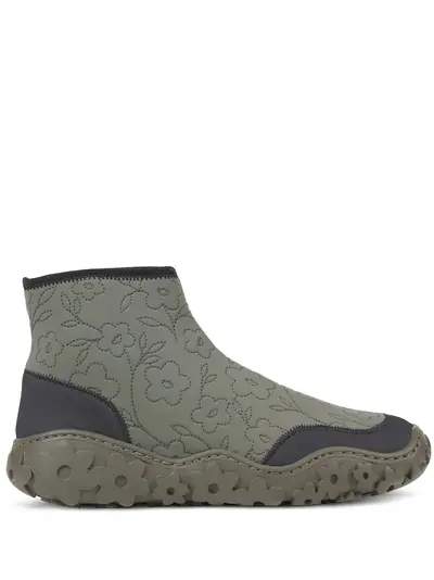 olive green black rubber sole floral motif visible stitching