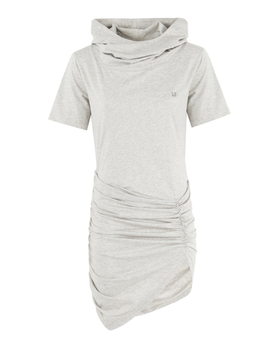 Платье Giuseppe Di Morabito из трикотажного хлопка серого меланжевого оттенка. Модель облегающего силуэта со сборкой дополнено капюшоном.
