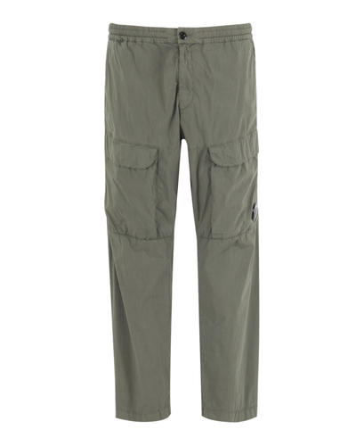 Брюки-карго с регулируемым поясом на шнурке, застежкой на молнию и пуговицу, а также двумя наклонными карманами для рук. Одежда также имеет один задний карман с вышитым логотипом и два набедренных кармана с линзами. Изготовлен из 50 Fili — смеси нейлона и хлопка, полученной из американских полевых парк. Полиуретановое покрытие повышает водостойкость и придает изделию глубокий, разнообразный тон после двойного окрашивания одежды. Свободная посадка.