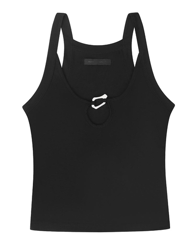 Топ HELIOT EMIL из трикотажного материала черного цвета в мелкий рубчик. Эластичное изделие облегающего силуэта с металлической деталью.