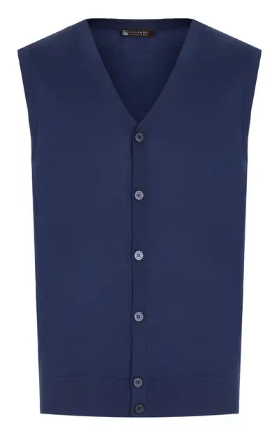-Темно-синий трикотажный жилет из смесового кашемира от COLOMBO.