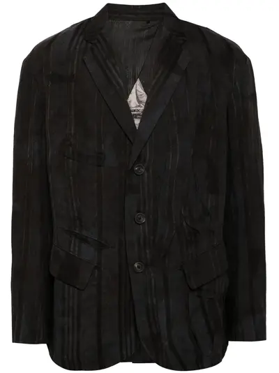 blue linen blend asymmetric design crinkled finish vertical stripe print notched lapels long sleeves buttoned cuffs front button fastening chest welt pocket two side flap pockets straight hem partial lining