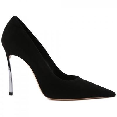 Чёрные туфли из натуральной замши от Casadei. Модель, актуальная во все сезоны и времена - туфли-лодочки на тонком каблуке Blade из закаленной стали. Пара в чёрном цвете подойдет как для строго офисного образа, так и для вечернего выхода в свет. Высота каблука - 120 мм., подошва и стелька выполнены из натуральной кожи.