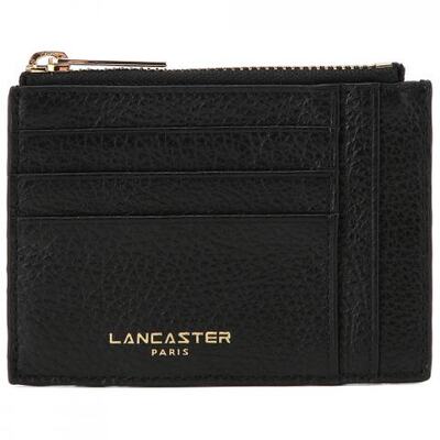 Кредитница из черной кожи от Lancaster. Аксессуар, который легко взять с собой, ведь он поместится в карман пиджака или куртки, или в самую компактную сумочку. Кредитница выполнена из натуральной кожи с тисненым фирменным логотипом бренда. Карман на молнии в центре, три слота для карт и отделение для чеков с одной стороны, открытое окошко с прозрачной вставкой и дополнительные карманы с другой.