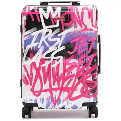 Чемодан SPRAYGROUND. Стильный и практичный чемодан станет верным спутником в путешествиях. Прочный и неразрушимый корпус из пластика, прочная рама из алюминиевого сплава и надежный замок TSA надежно защитит ваш багаж во время путешествия. У чемодана 4 двойных вращающихся утопленных колеса и телескопическая регулируемая ручка. Внутри несколько карманов и отделений для максимальной организации пространства: сетчатые карманы, карман-органайзер, ремни для крепления багажа. Чемодан украшает яркий граффити-принт.