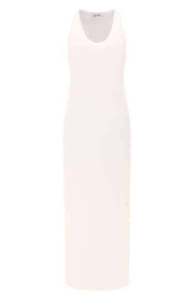 Белое платье-майка — универсальная основа для создания повседневных образов. В сочетании с сабо и плетеной сумкой модель будет уместна на отдыхе у моря, а босоножки на шпильке и миниатюрная сумка адаптируют ее для вечернего мероприятия. Для пошива изделия использовали фактурный хлопковый трикотаж с добавлением эластана, поэтому оно комфортно садится по фигуре и не вытягивается со временем.