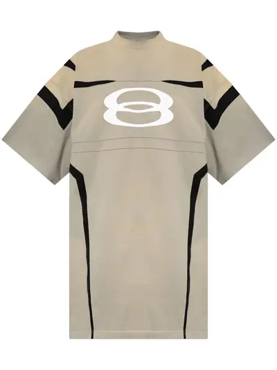grey cotton jersey texture crew neck logo print to the front logo print to the rear drop shoulder short sleeves straight hem