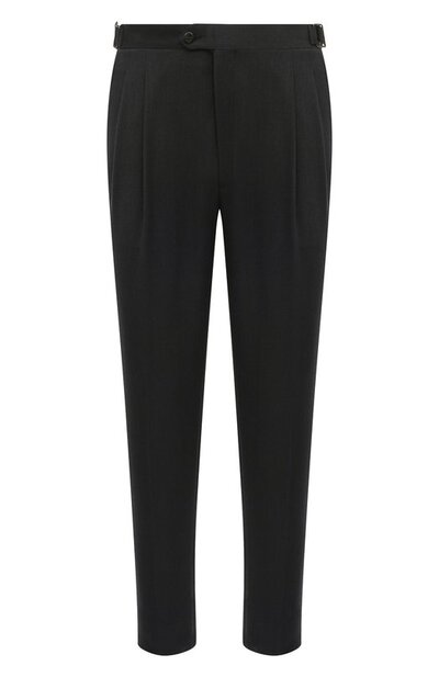 Лаконичные темно-зеленые брюки станут основой как офисного комплекта, так и повседневного образа. Модель со стрелками выполнили из мягкого шерстяного твила. Дышащий материал поддерживает оптимальный микроклимат и почти не мнется. На поясе есть узкие ремешки, позволяющие отрегулировать посадку на талии.