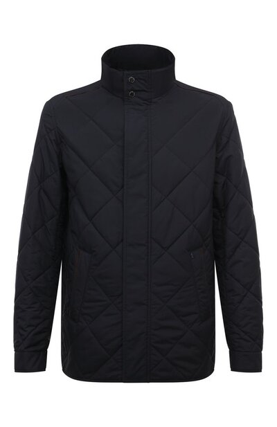 Темно-синяя куртка со стеганым ромбовым узором входит в экологичную линию одежды Save the sea, материалы для которой производят из переработанного океанского пластика. Из такого сырья выполнили и непродуваемый гладкий текстиль, и тонкий подклад, и легкий утеплитель. Потайную молнию и боковые карманы усилили кантом из экозамши Alcantara, а внутренний дополнили нашивкой с описанием коллекции. Сзади на воротнике-стойке – плавник фирменной акулы.