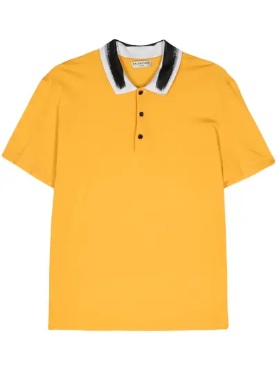 circa 2010s yellow/white/black cotton piqué weave polo collar front button placket short sleeves straight hem Condition: GOOD. This previously owned and used item is in good condition with minimal signs of use. This may include fading of material or plating and scratches.