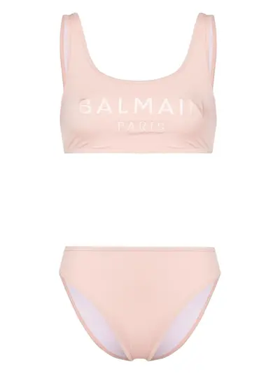 light pink stretch-design embroidered logo to the front scoop neck scoop back slip-on style wide shoulder straps elasticated hem two separate pieces Be mindful to try on swimwear over your own garments.