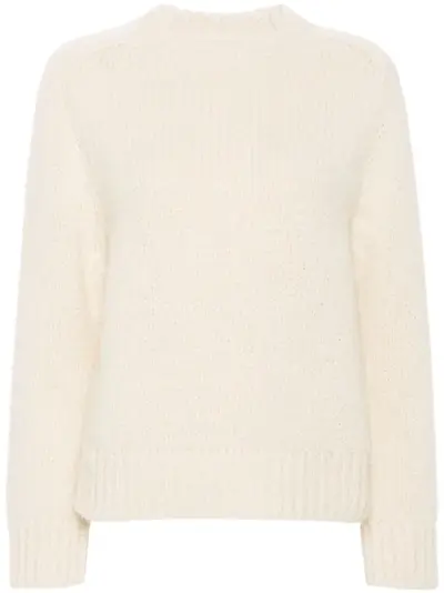 cream white chunky knit brushed effect ribbed crew neck long raglan sleeves ribbed cuffs and hem