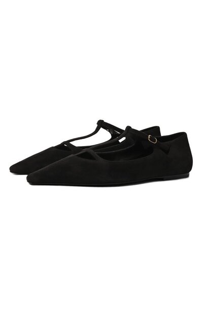 Линию Cyd дополнили моделью на плоском ходу. Пару с зауженным мысом изготовили из нежной пластичной замши, которая сразу подстраивается под силуэт стопы. Из такого же материала выполнили ремешок «Мэри Джейн» с двумя перемычками, дополняющими глубокий круглый вырез.