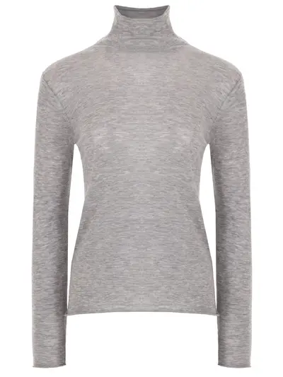 -Серая водолазка из тонкой мягкой шерсти от FREE AGE. -Модель полуприлегающего силуэта с длинными рукавами и невысоким воротником станет базой под пиджак или кардиган.