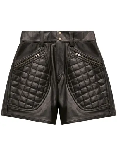 black calf leather diamond-quilted detailing front button fastening belt loops front zip fastening pockets two rear zip-fastening pockets straight leg thigh-length