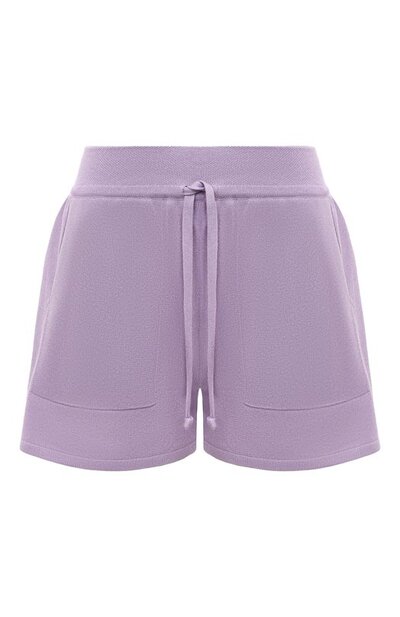 Для изготовления шортов с двумя боковыми карманами использовали вискозный трикотаж, укрепленный полиэстером. Посадку на талии можно регулировать шнуром в кулиске широкого эластичного пояса. Модель поладит как с кардиганом, так и с топом или футболкой.