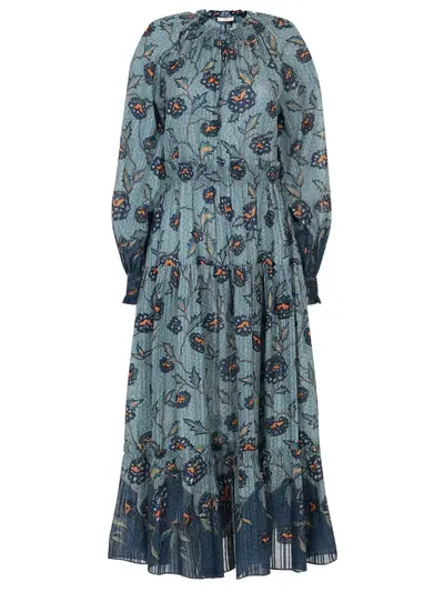 -Синее с цветочным принтом платье-миди из легкого смесового хлопка от ULLA JOHNSON.