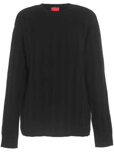 black wool-cashmere blend ribbed knit crew neck long sleeves straight hem