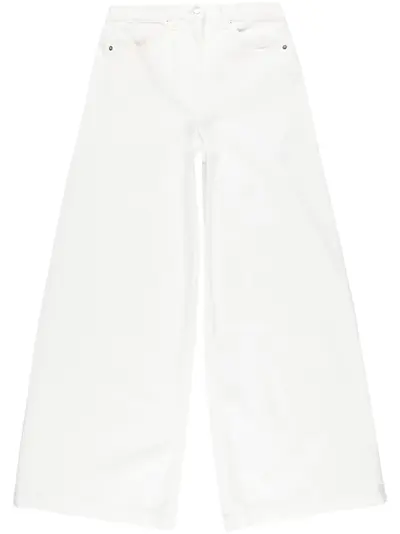 cream white cotton concealed fly and button fastening belt loops classic five pockets wide leg