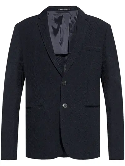 navy blue virgin wool blend notched lapels button fastening chest welt pocket two side slit pockets long sleeves straight hem
